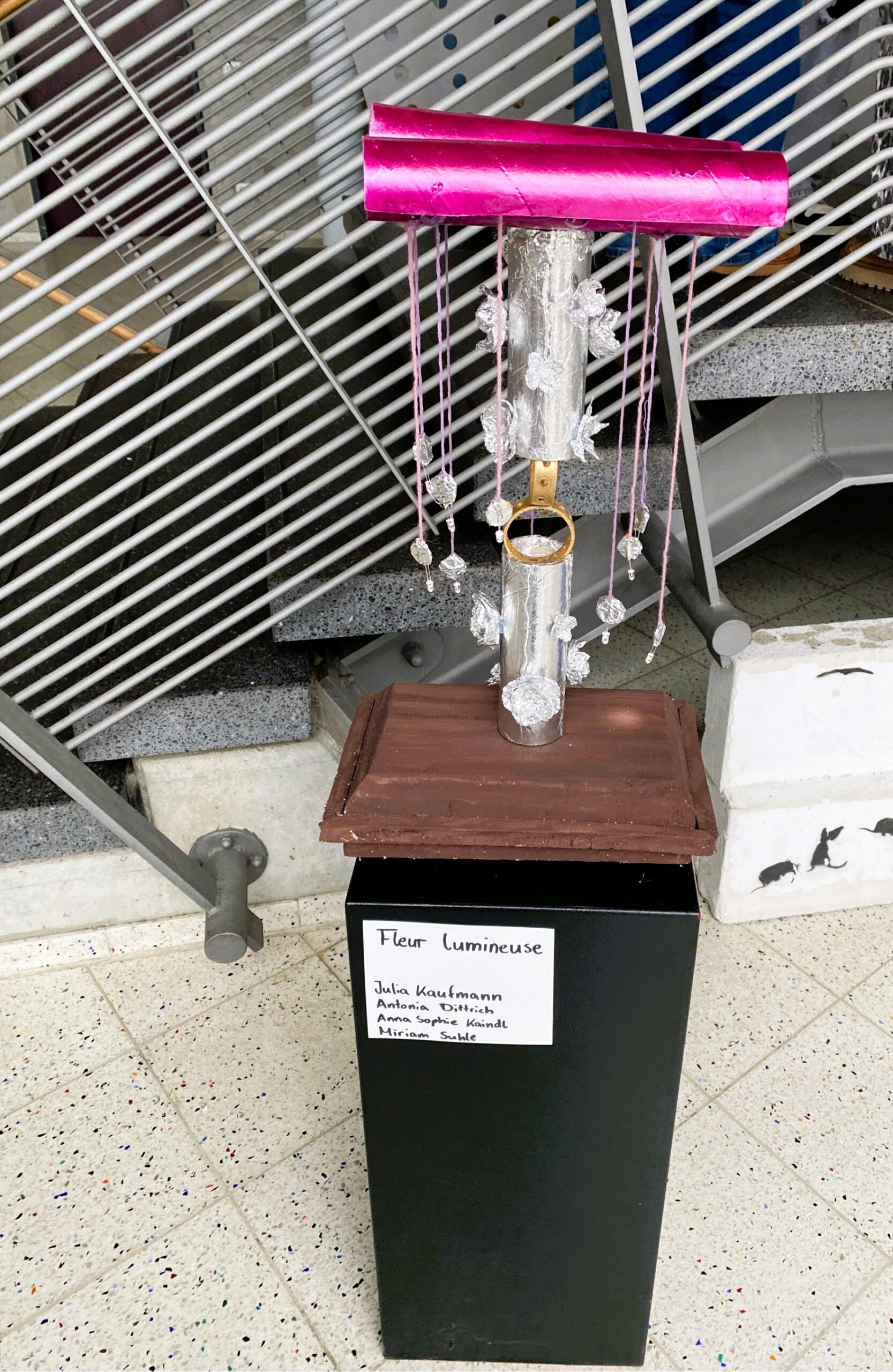 Abschließend wurden LEDs montiert, um die Lampe im Eingangsbereich unserer Schule auch leuchten zu lassen: