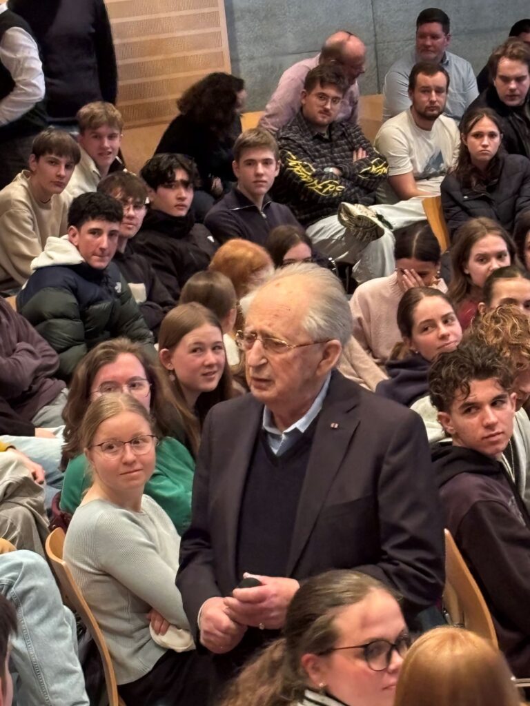 Dass ein fast 98-jähriger Mann vier Schulstunden lang vor hunderten Jugendlichen spricht, ihnen zuhört und sie ernst nimmt, hinterließ einen nachhaltigen Eindruck – fachlich, emotional und menschlich. Für viele Schüler*innen war der Vormittag mit Abba Naor weit mehr als eine Geschichtsstunde: Er war eine eindringliche Begegnung mit Vergangenheit und Gegenwart und ein eindringlicher Appell an Verantwortung, Menschlichkeit und Demokratie.