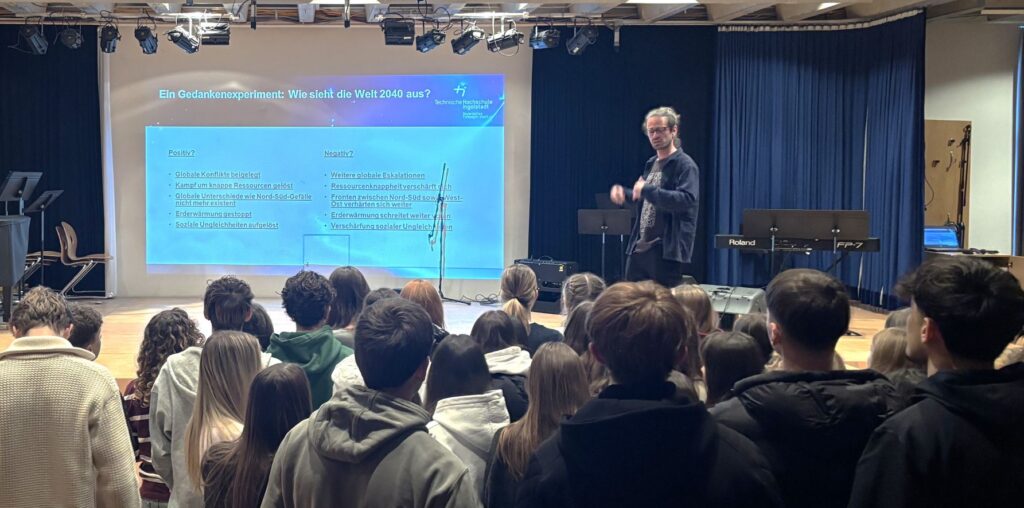 Wie werden wir leben, arbeiten und klingen? Seit dem 9. Februar dreht sich in der 11. Jahrgangsstufe am HGW alles um die „Zukunft“. Den Auftakt zur diesjährigen Wissenschaftswoche machte Dr. Gerhard Schönhofer (Bayerisches Foresight-Institut, TH Ingolstadt), der mit seinem packenden Vortrag über Trends und Zukünfte den aktuellen Stand der Forschung präsentierte.