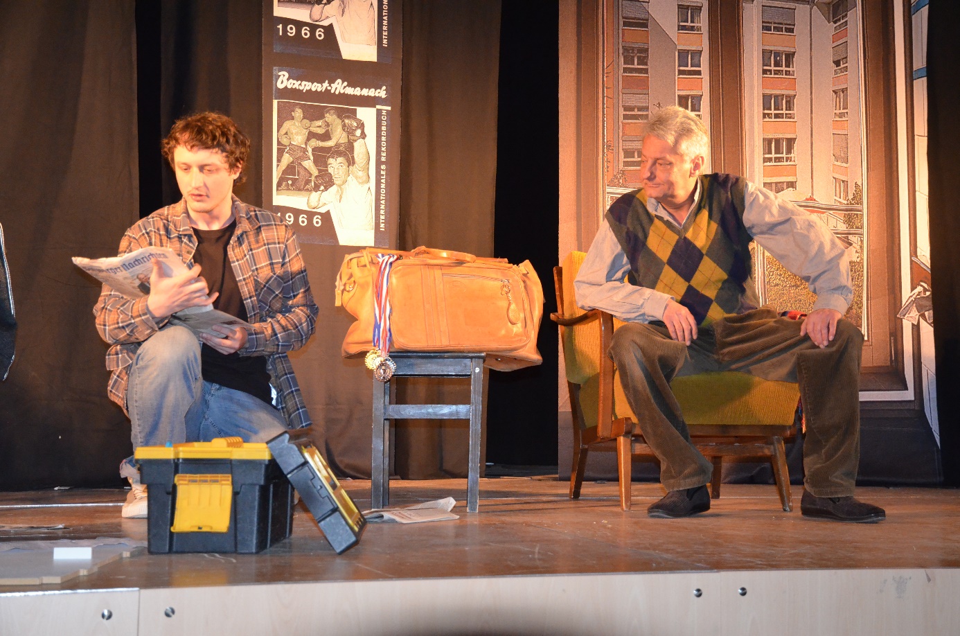 Das Theaterstück erzählt von einer Freundschaft, bei der Jung und Alt voneinander lernen. Der Zuschauer blickt zu Beginn des Stückes in das triste Zimmer eines Altenheimes, in dem der ehemalige Preisboxer Leo seine Tage apathisch absitzt. Die Handlung setzt ein, als der 16-jährige Jojo, der wegen eines Mofadiebstahls Sozialdienst im Altenheim ableisten muss, die Ruhe des alten Mannes stört. Er hat die Aufgabe einen Kasten zusammenzubauen. Da Leo den Jugendlichen ignoriert, redet dieser mit sich selbst und man erfährt, dass Jojo eigentlich unschuldig ist und die Strafe für einen Bekannten auf sich genommen hat, um einem Mädchen zu imponieren. Aber auch Leo ist nicht freiwillig in der geschlossenen Abteilung dieses Altenheims, denn er hat einen Pfleger geschlagen und gilt nun als gemeingefährlich. Im Laufe der 7 Szenen des Stückes entwickelt sich zwischen diesen sehr unterschiedlichen Protagonisten eine Freundschaft, die beiden eine neue Perspektive für die Zukunft aufzeigt.